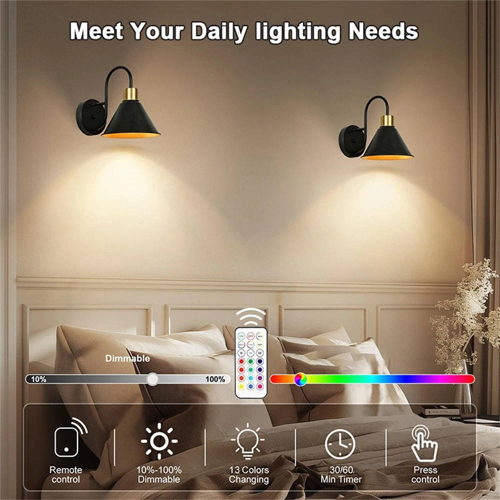 2PKS Battery Operated Wall Sconces with Remote Dimmable Wireless LED Wall Lamp