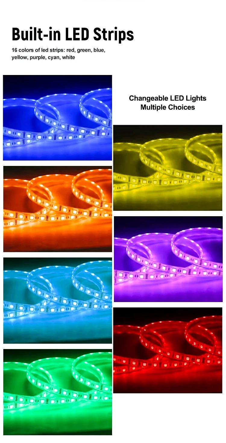LED LIGHT TECHNOLOGY: Customizable multicolor LED strips transform the space into a professional photo environment.