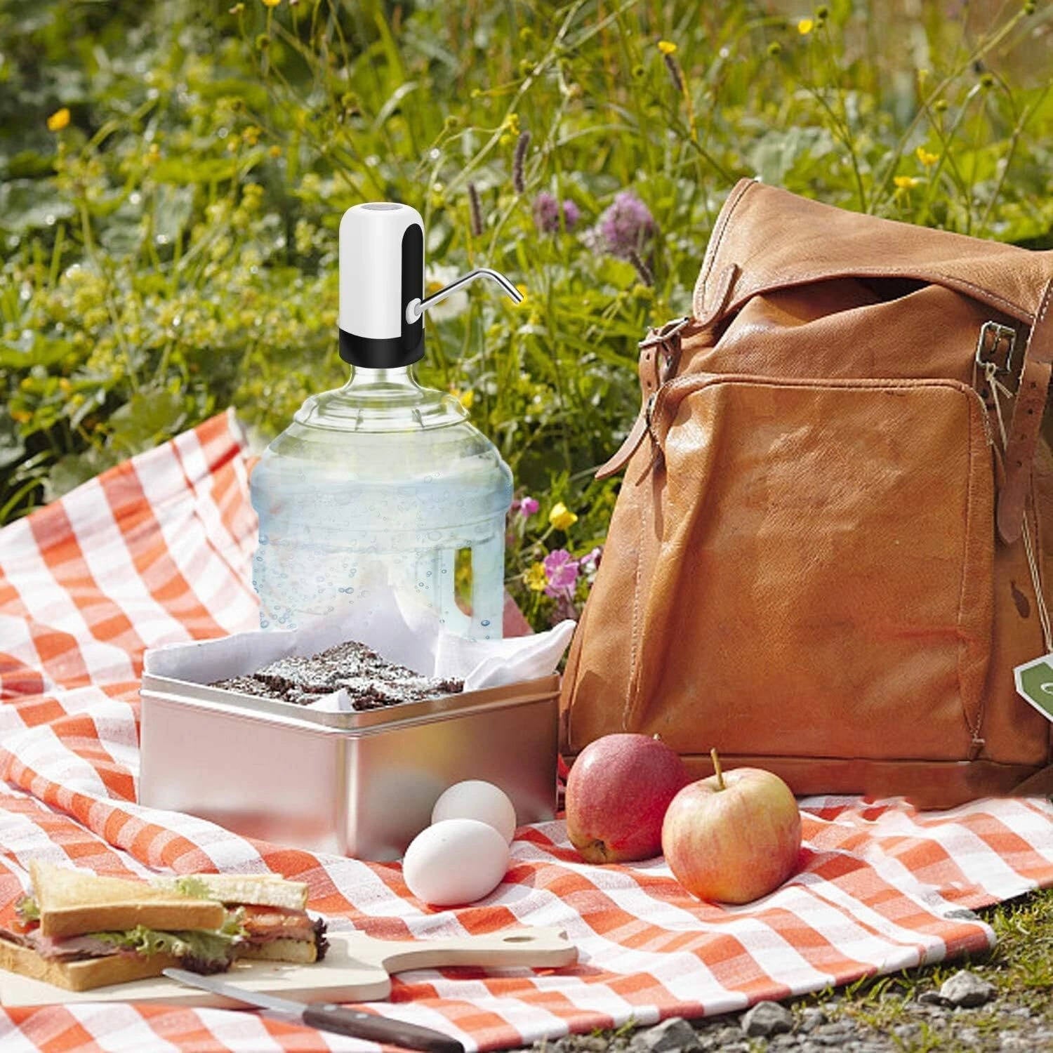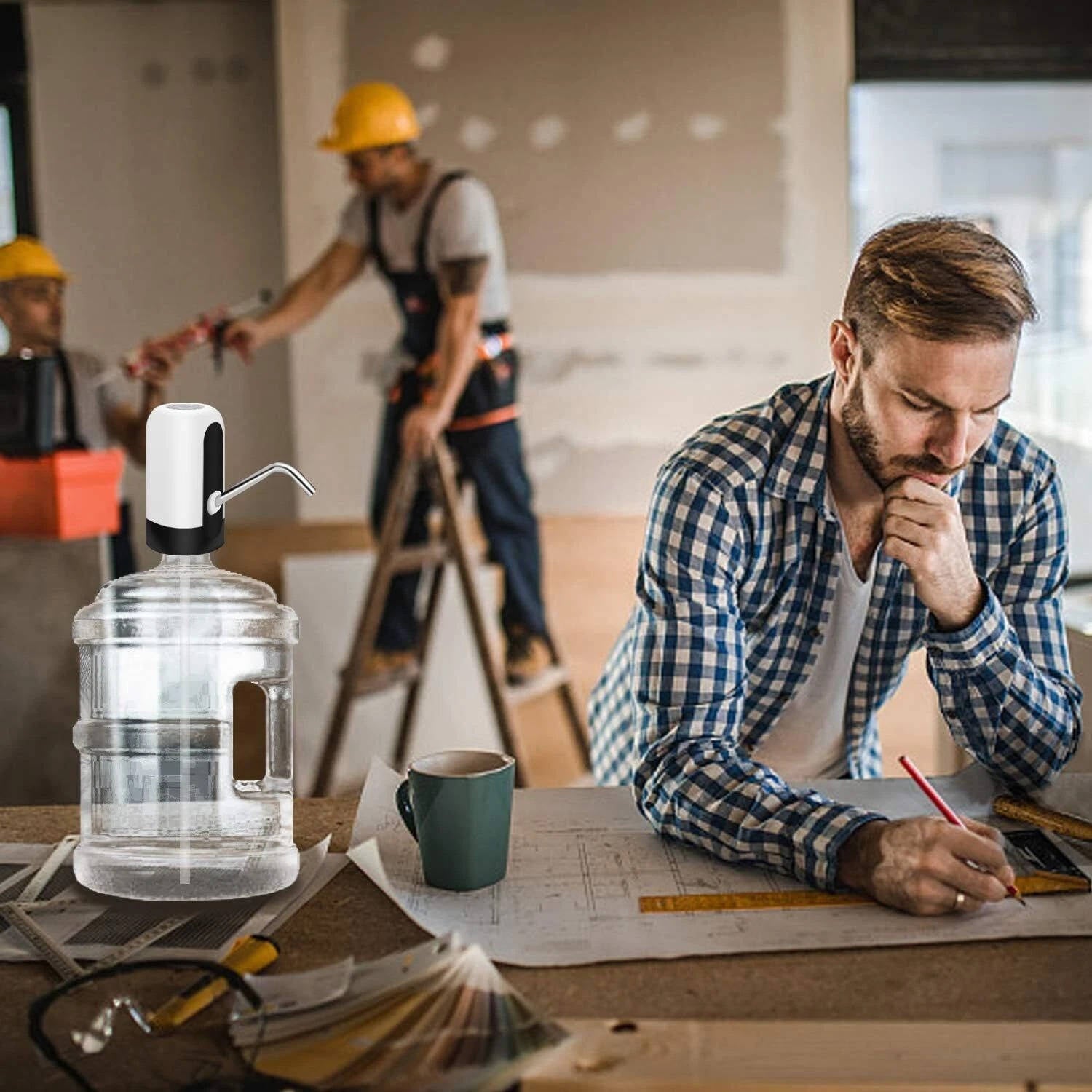 The rechargeable battery lasts over a month on one charge, so you're not constantly hunting for outlets. It fits pretty much any water bottle size from small 4.5L up to huge 5 gallon jugs. The food grade materials keep your water tasting clean and fresh every time.