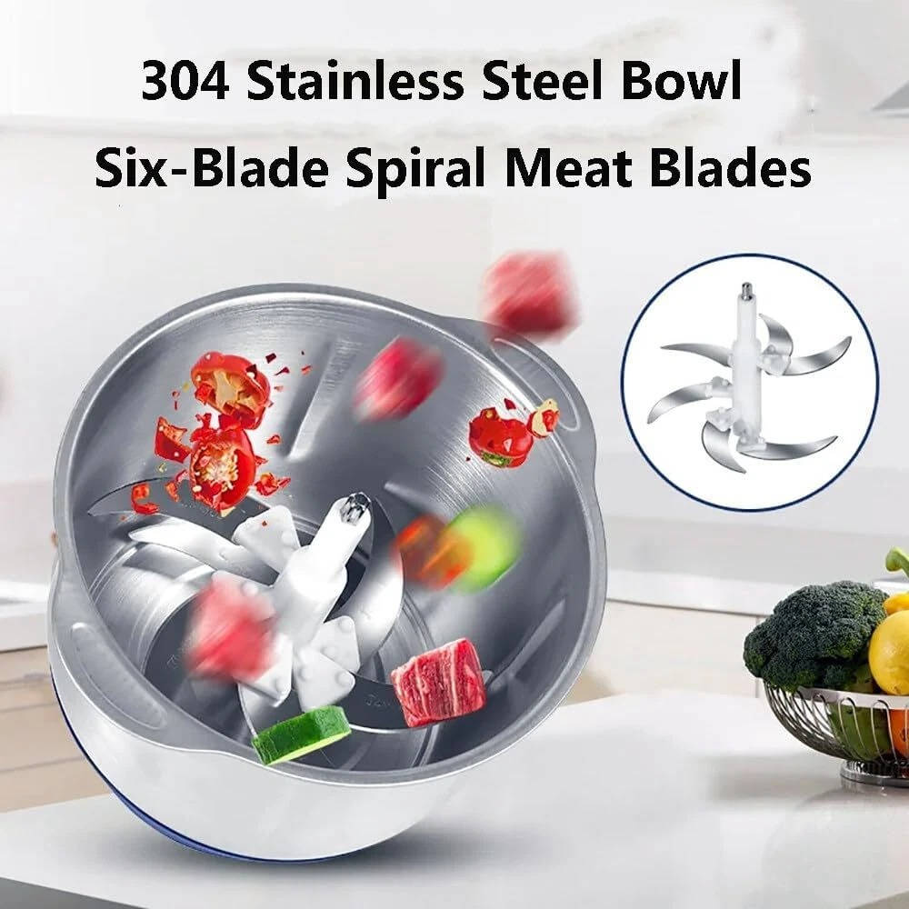 MASSIVE 5 LITER CAPACITY: Big stainless steel bowl handles family sized batches, saving you from chopping in annoying small rounds.