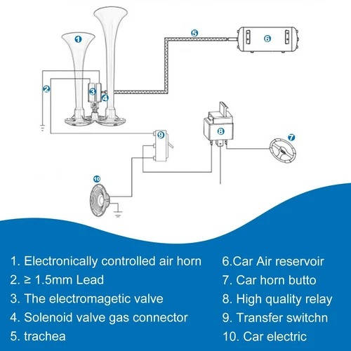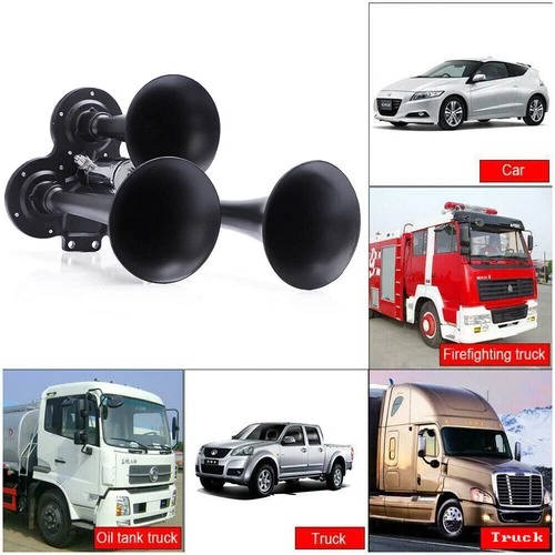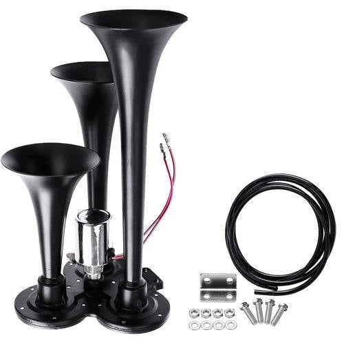 Chrome plated zinc metal handles rain, snow, and road salt without rusting or wearing out over time. Works with 12V or 24V systems in cars, trucks, motorcycles, boats, and pretty much any vehicle you've got. Three trumpets in different sizes create that real train horn sound you're looking for.
