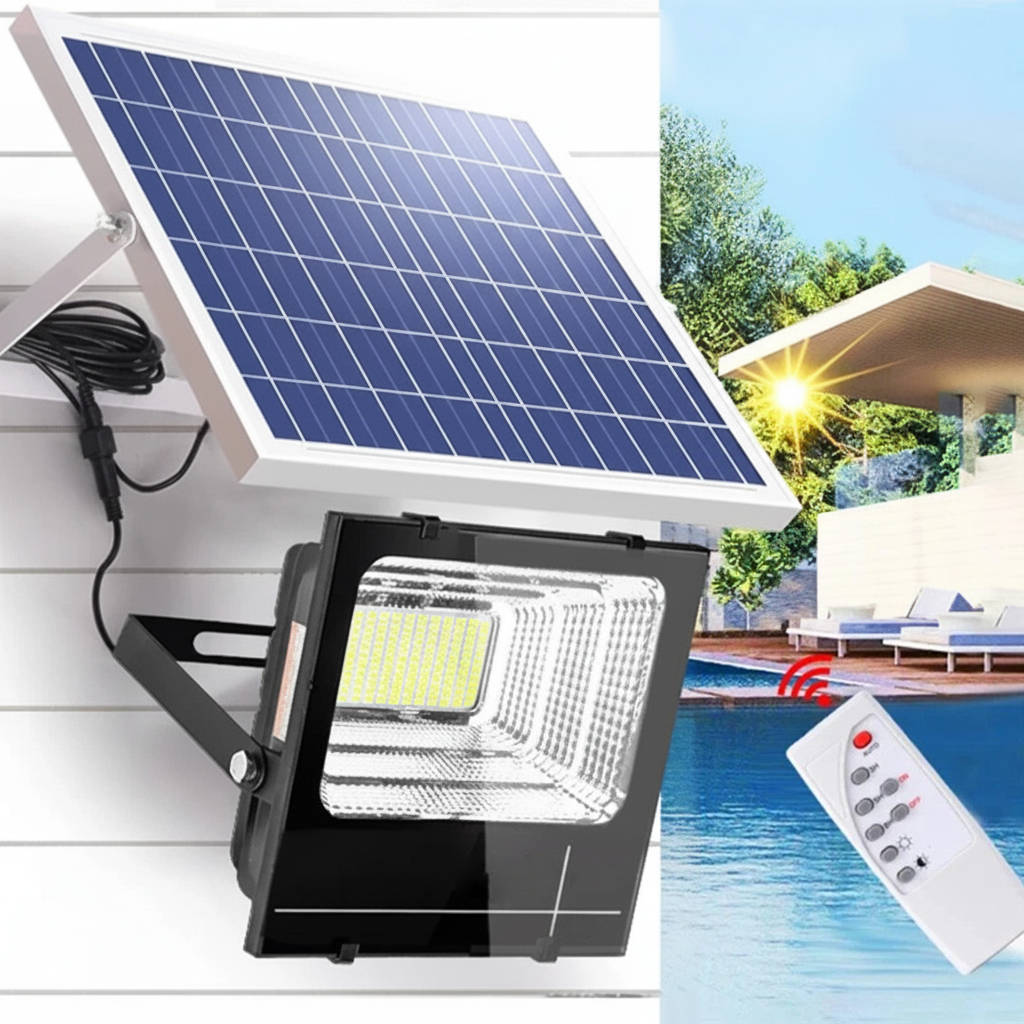 The solar panel soaks up sun during the day and stores it in the battery. When it gets dark, the sensor kicks on automatically, or you grab the remote and control it from up to 16 feet away. It stays on all night or turns off when your timer runs out.