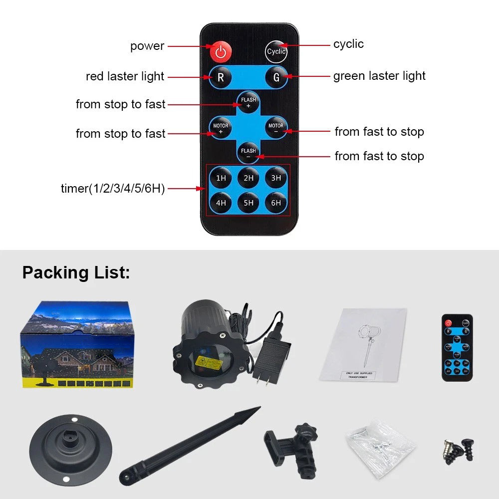 MOVING RED & GREEN LASER PATTERNS: Watch red and green dots dance across your walls, trees, and lawn for instant festive magic.