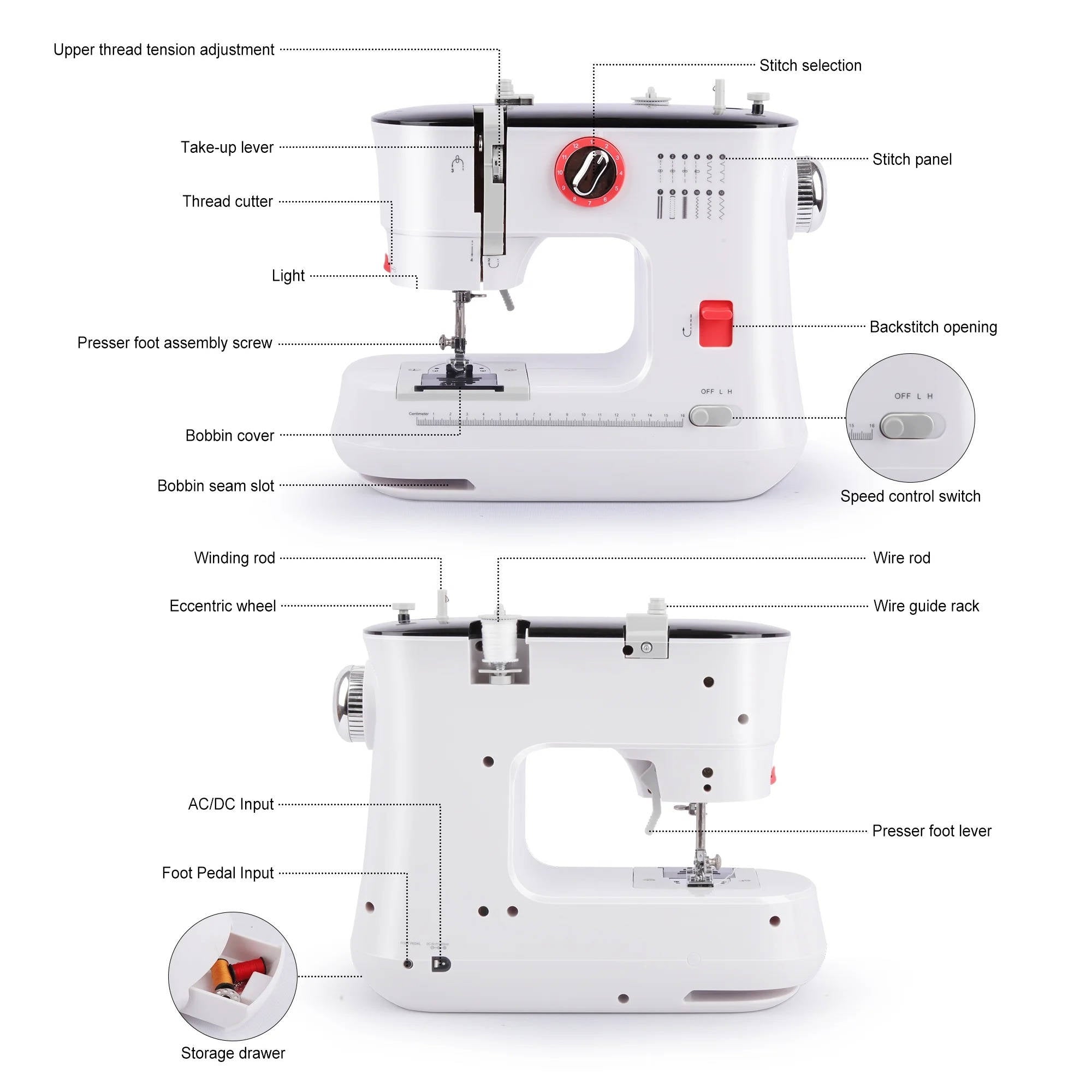 ELECTRIC PORTABLE SEWING MACHINE FOR BEGINNERS, 12 BUILT IN STITCHES WITH EXTENSION TABLE SPECS