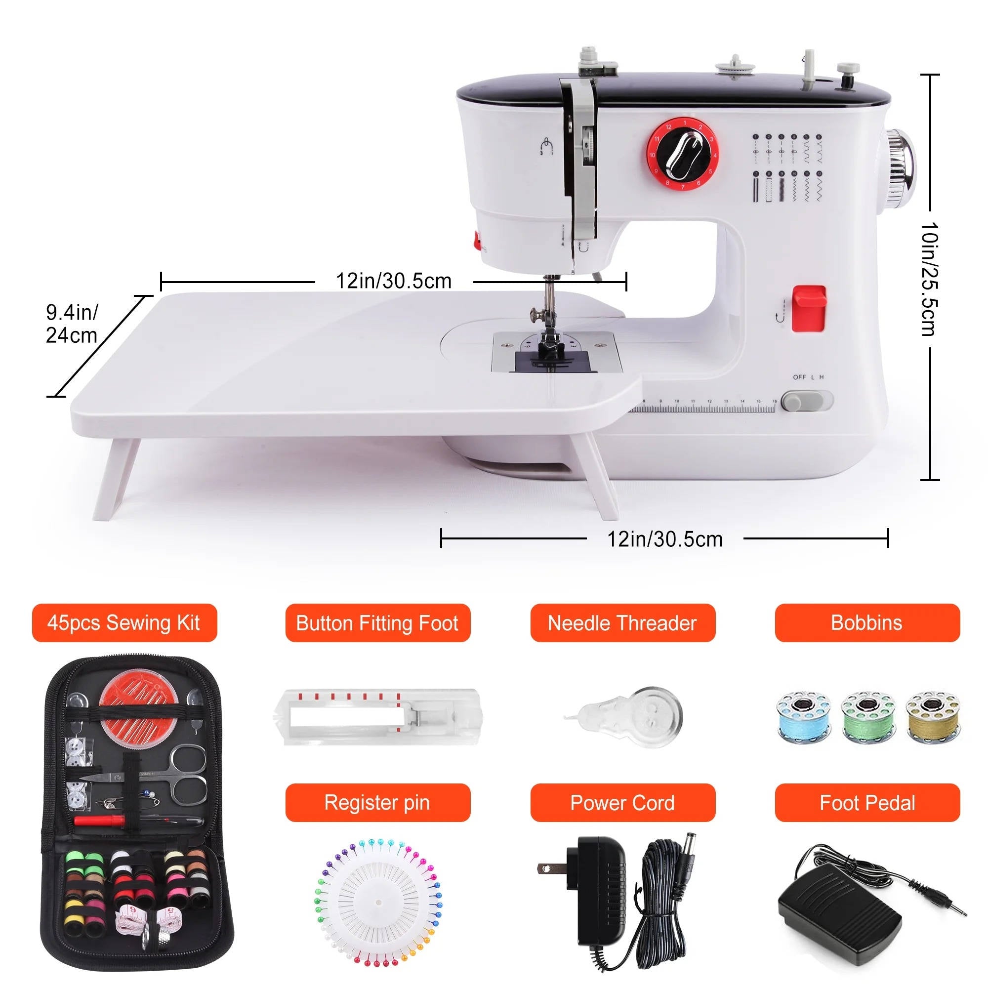 Electric Portable Sewing Machine for Beginners, 12 Built in Stitches with Extension Table