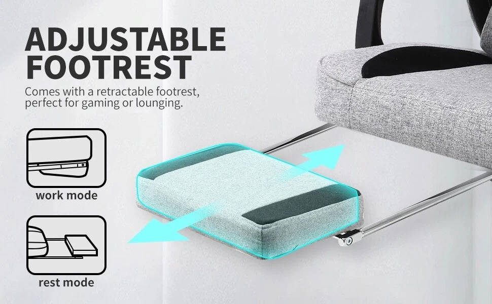FOOTREST AND ARMREST DESIGN: Retractable footrest and synchronized armrests adjust perfectly for gaming, working, or resting positions.