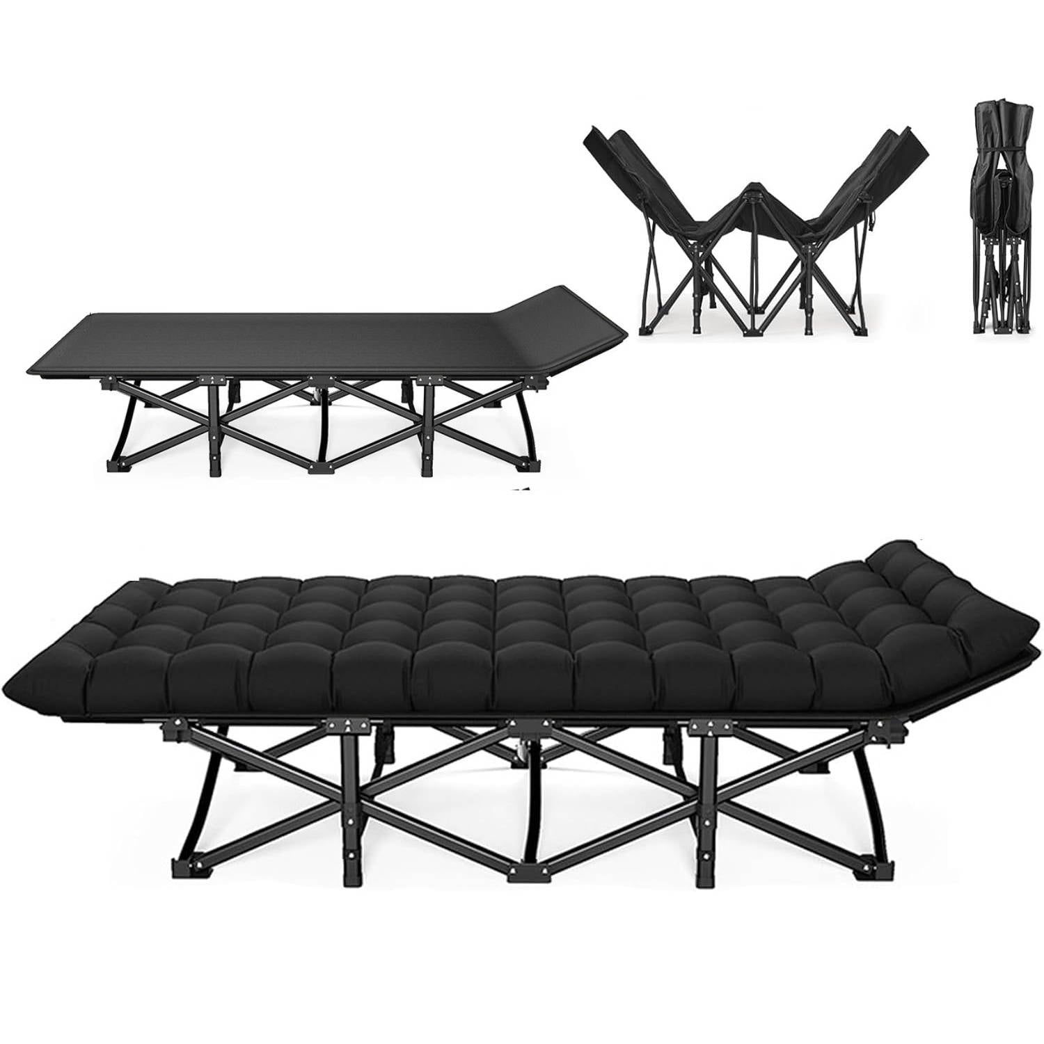 Made with thick Oxford fabric that sheds water, wipes clean, and holds tight without sagging. The steel frame supports up to 600 pounds without shaking or bending under weight. The bars sit below the fabric, so nothing digs into your back while you're lying down.
