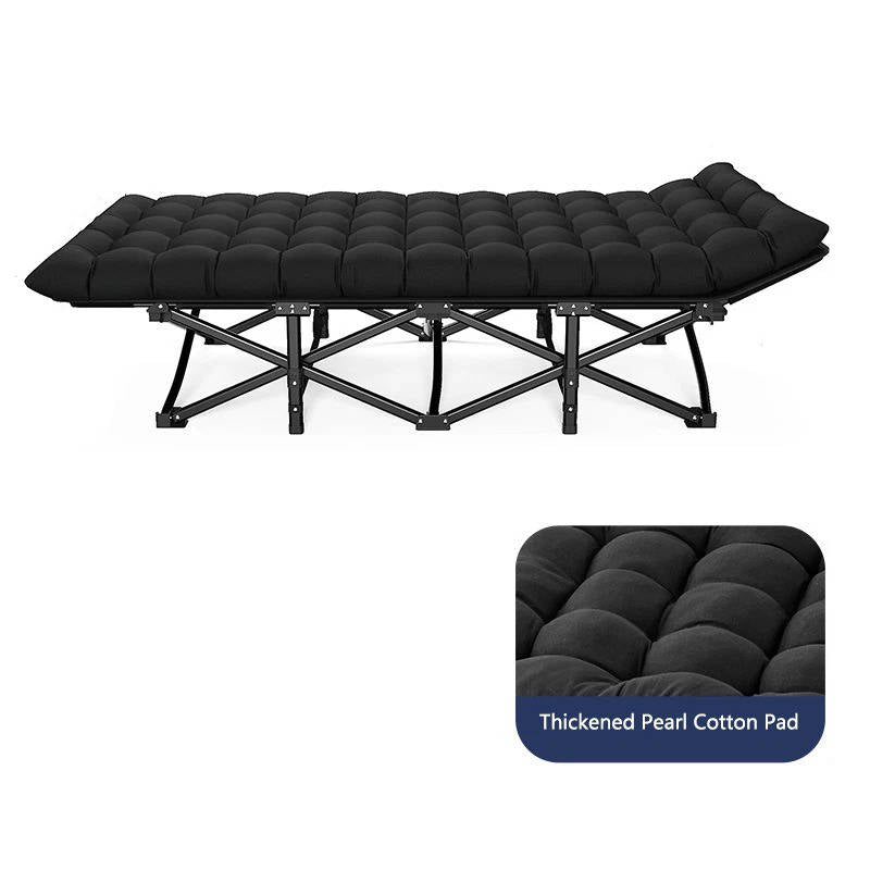 Unfold the frame in under ten seconds, and it clicks into place without any tools or parts. The soft pad sits on top, giving your back cushion while you sleep. When it gets hot, just pull the pad off so air flows through and keeps you cooler.