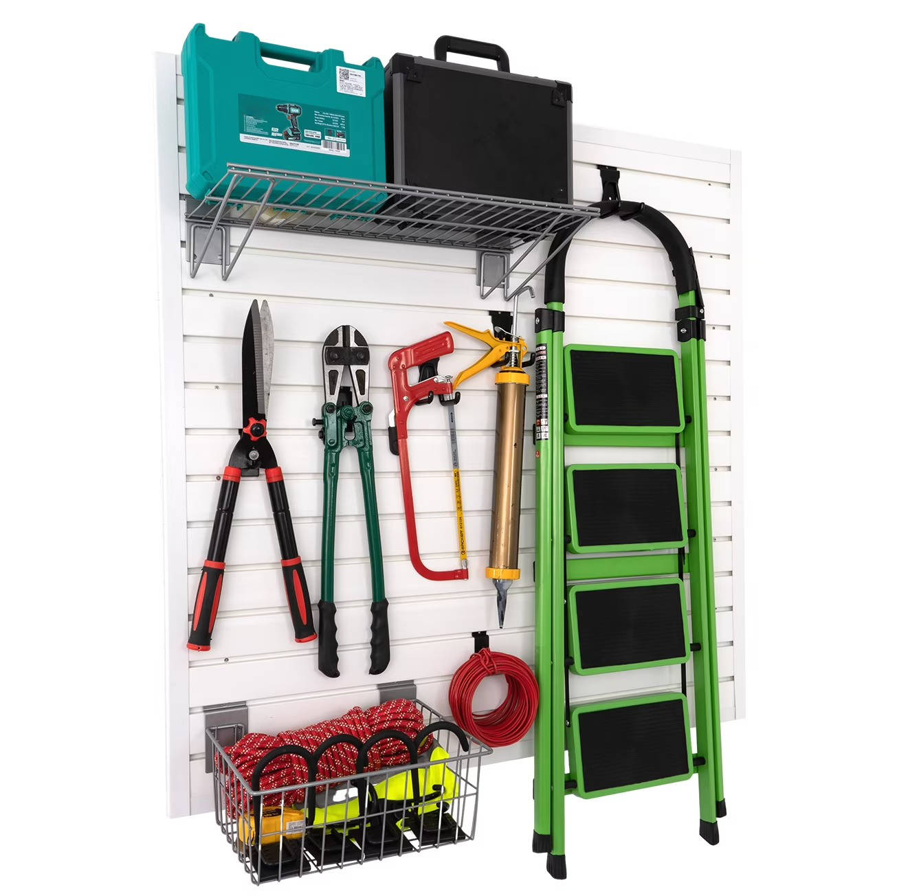 That's not all! Cut the panels down to fit tight spots or awkward corners in your space. The waterproof surface wipes clean after dirty jobs or spills. Plus, air flows behind everything to keep moisture from building up while the locking tabs hold rows tight and straight.