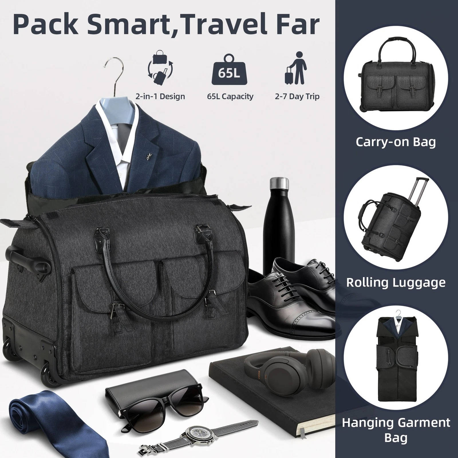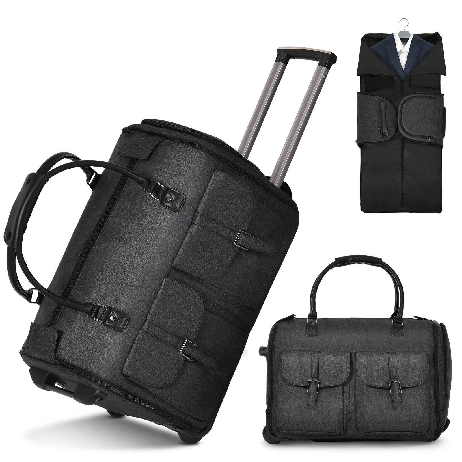 DUAL FUNCTION DESIGN: Transforms from rolling duffle to hanging garment bag with included door hook for maximum versatility anywhere.