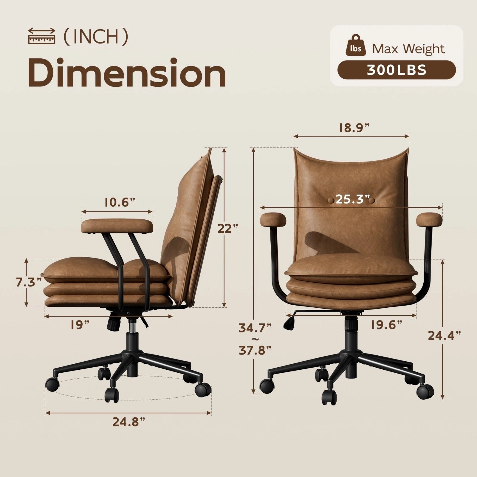 THREE LAYER CUSHIONED SEAT: Premium PU leather covers high density and soft sponge layers for all day comfort during long work sessions.