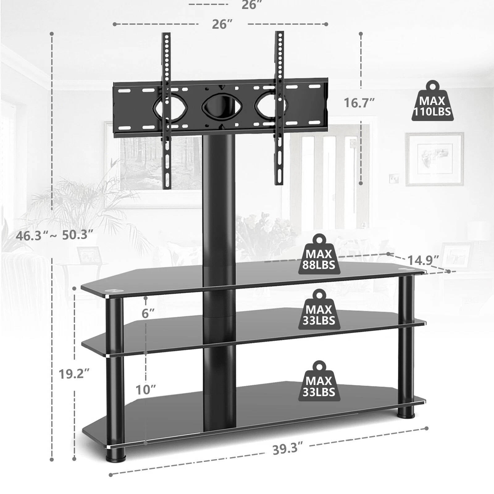 GLASS FLOOR TV STAND WITH SWIVEL MOUNT FOR 32 TO 70 INCH FLAT SCREEN TVS SPECS