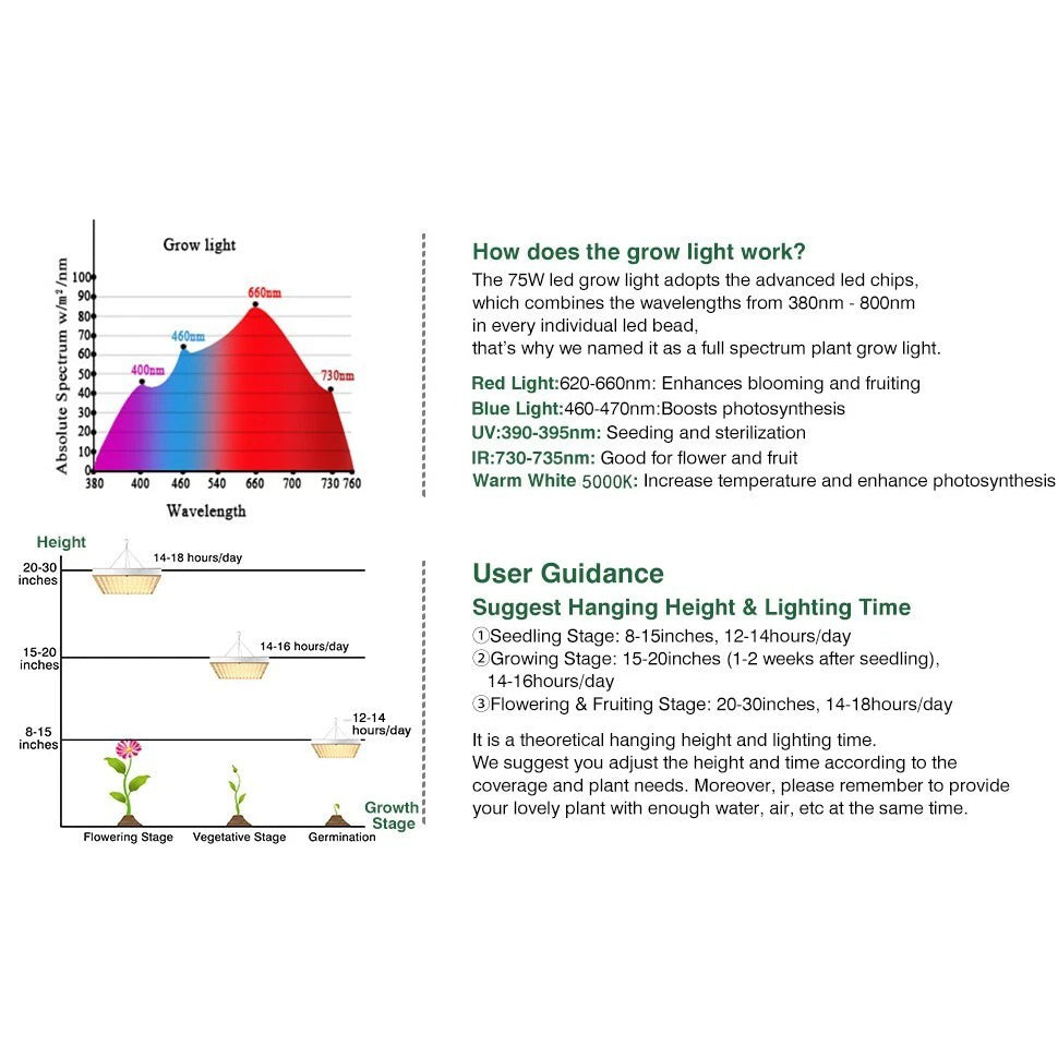 FULL SPECTRUM 380NM TO 800NM: Red, blue, UV, IR, and warm white LEDs mimic sunlight for photosynthesis and growth at every stage.