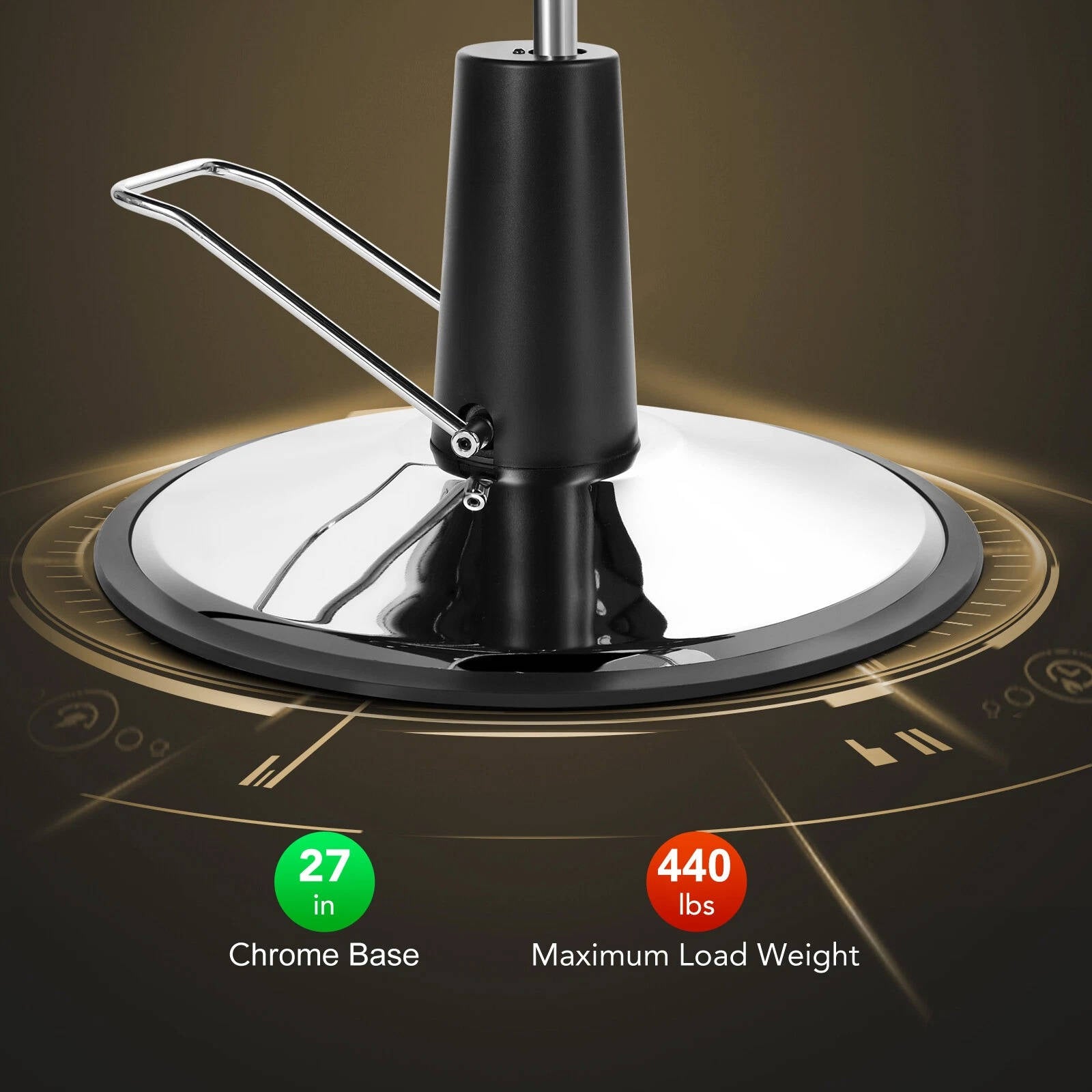360 DEGREE SWIVEL BASE: Spin your client all the way around on the 27 inch chrome base for perfect positioning every time.