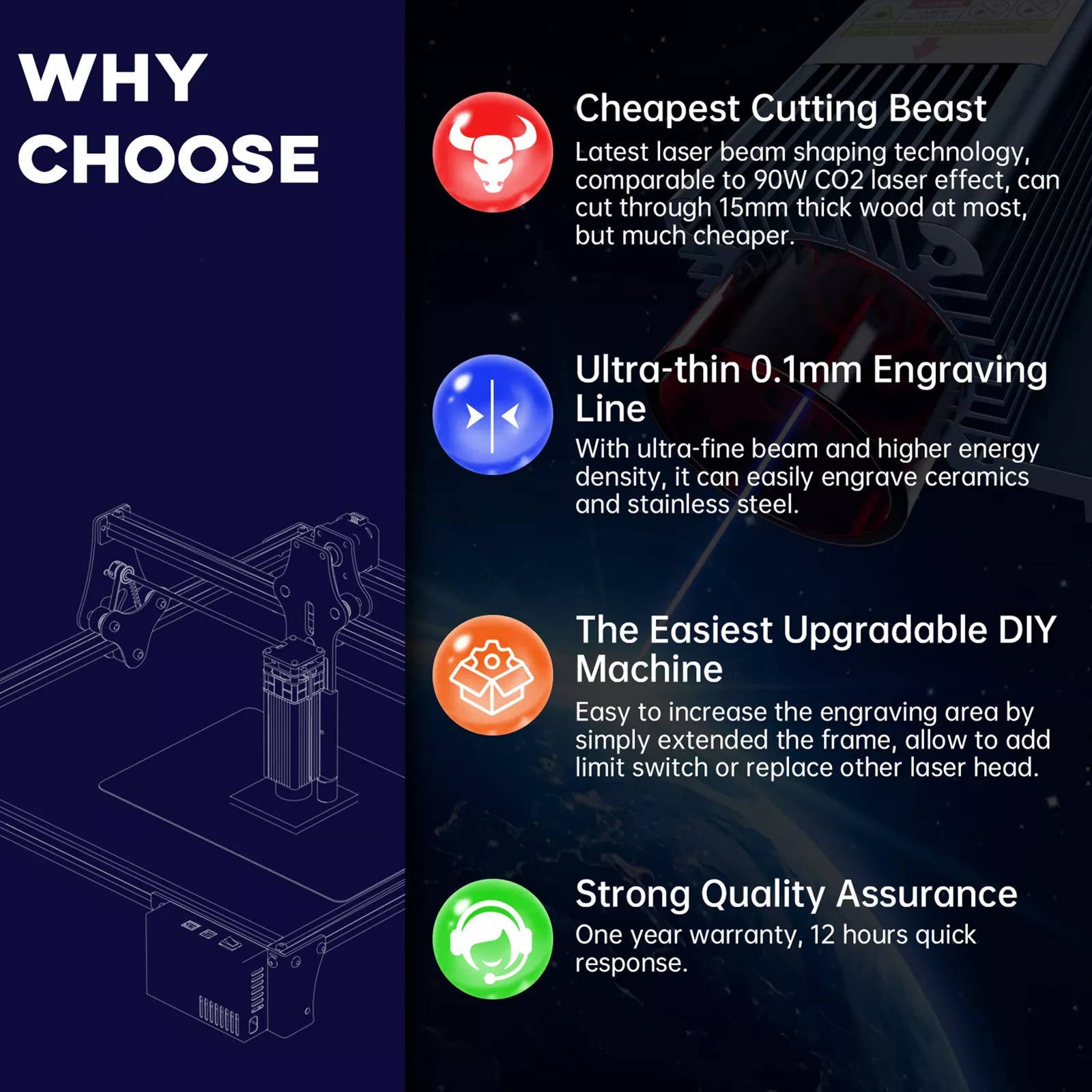 PRECISION CUTTING DEPTH: Delivers professional cuts through 0.59 inch wood, 0.39 inch acrylic with ultra thin 0.004 inch engraving lines.