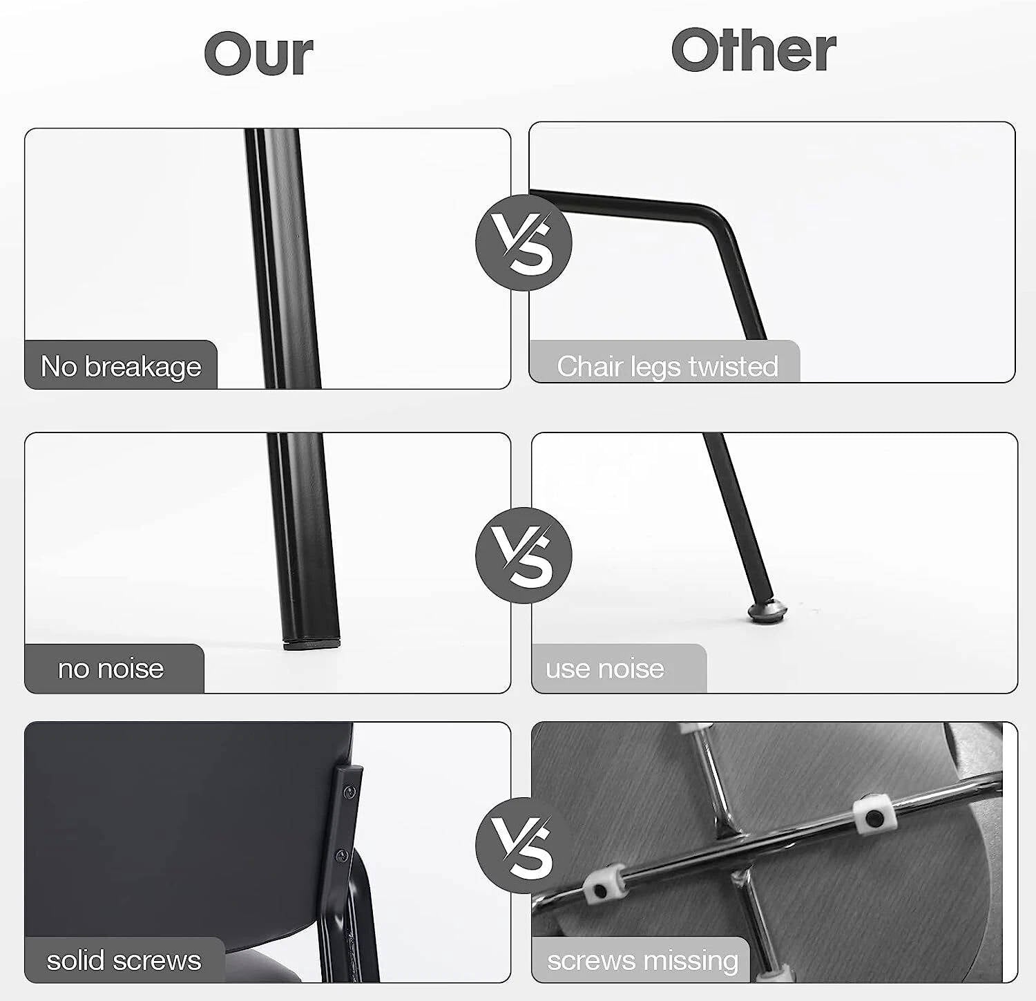 But wait, there's more! Use these chairs inside or outside without worrying about color fading or material damage. When assembled, the screws stay tight without making those annoying squeaks during meetings. Plus, the leather doesn't have that fake chemical smell, making them perfect for sensitive spaces like hospitals.