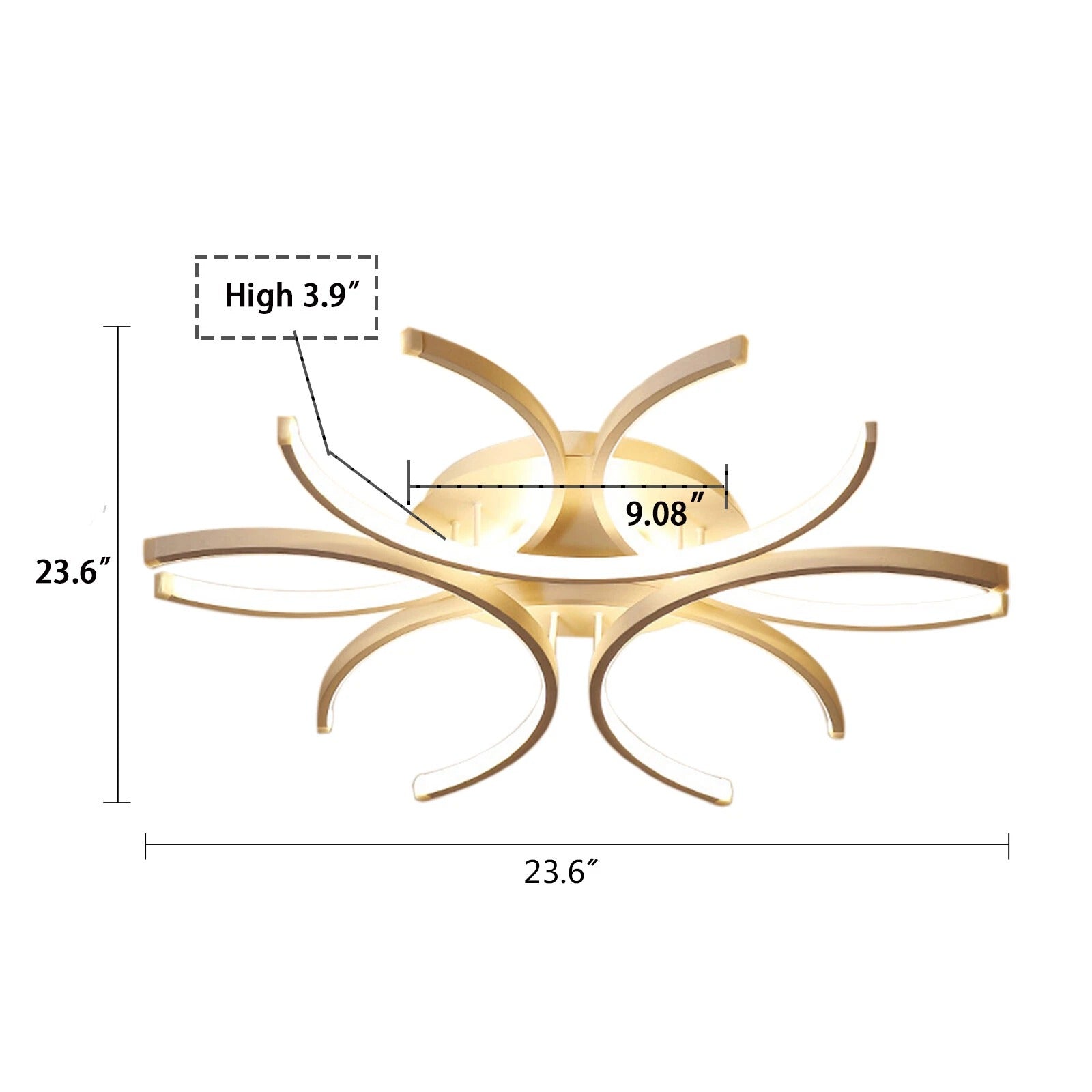 COMPACT CEILING MOUNT: Measures 23.6 inches wide, 23.6 inches long, and 3.9 inches tall, fitting flush on standard height ceilings.