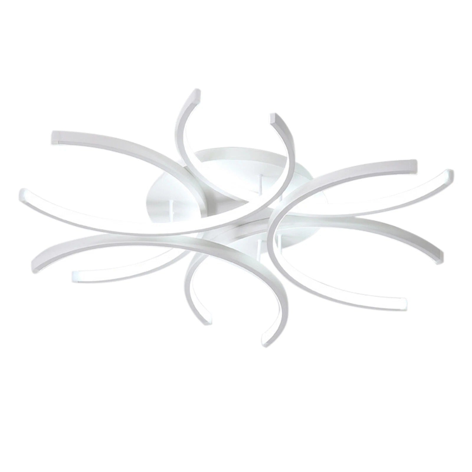 SCULPTURAL FLOWER DESIGN: Six curved metal arms loop together in a modern shape that adds style to any ceiling space.